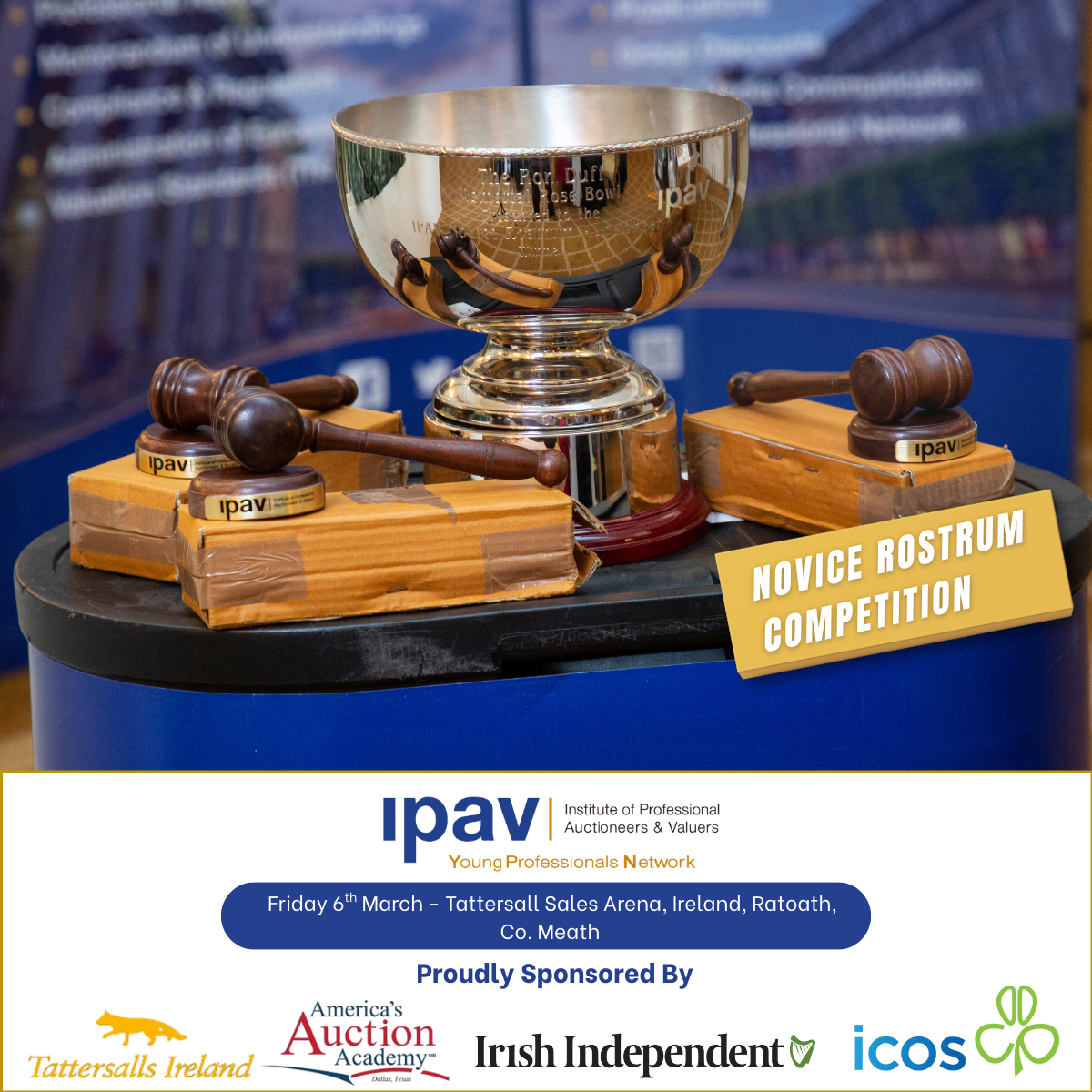 Taking place on Friday, 6 March, at the Tattersalls Sales Arena, IPAV’s YPN Rostrum Auctioneer Competition is an exciting event celebrating the skill and craft of rostrum auctioneering. With a limited number of places available, the competition is now open for entries, and application forms can be accessed below.