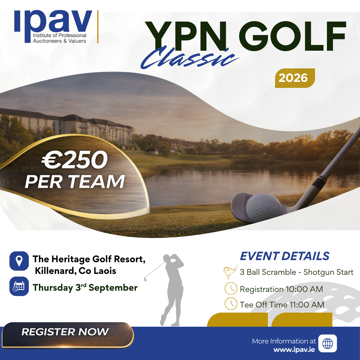 IPAV are delighted to announce that our YPN annual golf classic will be taking place on Thursday September 3rd, 2026, at the wonderful championship golf course in The Heritage, Killenard, Co. Laois.