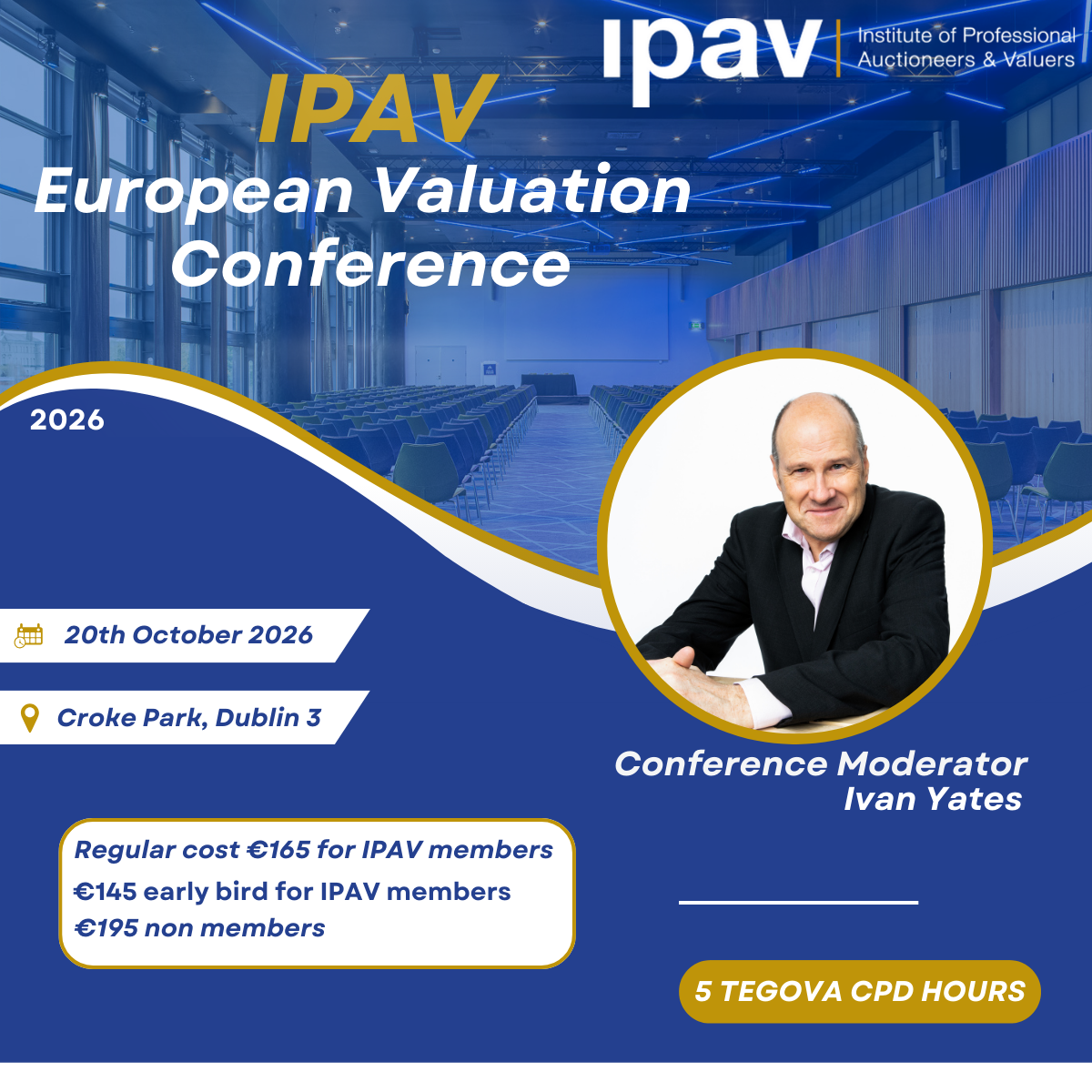 Announcing IPAV’s Annual European Valuation Conference. Taking place at Croke Park, Dublin 3 on 20th October 2026, this flagship event is a must-attend conference for valuers across Ireland. We are delighted to welcome back Ivan Yates as our conference MC, and this event, brings together leading experts, decision-makers, and practitioners to explore the latest developments shaping the valuation profession.